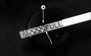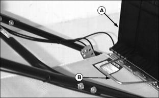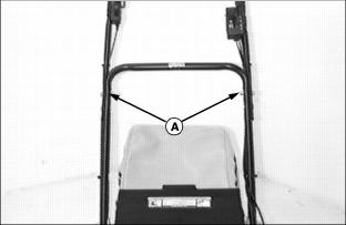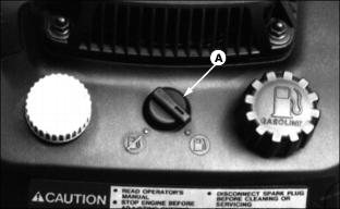 2. Add 0.8 L (1-3/4 pt) oil through dipstick tube. NOTE: Do not tighten it, let threads rest on top of tube. 3. Check oil level. Install dipstick. 4. Check oil on dipstick: Oil should be to the FULL mark (A). 5. Install and tighten dipstick. Remove the "No Oil" tag. Install Grass BagTest Mower Operation1. Put enough fuel in fuel tank to test mower operation. 2. Turn fuel shutoff knob (A) to the open position. 3. Move throttle lever (B) to the fast position. 4. Start engine and check mower operation. (See Operating section). 5. Stop engine and turn fuel shutoff valve to the closed position. |