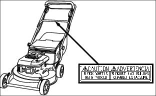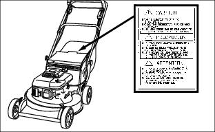 SafetyUnderstanding The Machine Safety LabelsThe machine safety labels shown in this section are placed in important areas on your machine to draw attention to potential safety hazards. On your machine safety labels, the words DANGER, WARNING, and CAUTION are used with this safety-alert symbol,. DANGER identifies the most serious hazards. The operator's manual also explains any potential safety hazards whenever necessary in special safety messages that are identified with the word, CAUTION, and the safety-alert symbol,. DANGERROTATING BLADE· Stop engine before lifting door and clearing discharge. THROWN OBJECTS· Do not lift or block door open with blade engaged. Do not mow without catcher, side chute or mulcher plug/plate in place. CAUTION: HELP AVOID INJURIES· Pick up objects that blade may hit and throw. · Keep children and bystanders far away. · Stop engine before adjusting cutting height. · Do not allow operation of the machine by untrained personnel. · Do not operate the machine without guards, shields, and safety devices in place and working. DANGER: KEEP HANDS AND FEET AWAYDANGER: ROTATING BLADE· Do not put hands or feet under or into mower when engine is running. CAUTION· Bag is subject to wear and deterioration. · Check bag frequently. Replace when necessary. · Use John Deere bag or equivalent to comply with safety specifications. CAUTIONCertification LabelThis OPEI label on your mower indicates that this model has been certified by an independent laboratory for compliance with American National Standard B-71.1, "Safety Specifications" for Power Lawn Mowers, Lawn and Garden Tractors, and Lawn Tractors. Emission Control System Certification LabelNOTE: Tampering with emission controls and components by unauthorized personnel may result in severe fines or penalties. Emission controls and components can only be adjusted by EPA and/or CARB authorized service centers. Contact your John Deere Commercial and Consumer Equipment Retailer concerning emission controls and component questions. The presence of an emissions label signifies that the engine has been certified with the United States Environmental Protection Agency (EPA) and/or California Air Resources Board (CARB). The emissions warranty applies only to those engines marketed by John Deere that have been certified by the EPA and/or CARB; and used in the United States and Canada in off-road mobile equipment. Emission Compliance PeriodIf your engine has the emission compliance category listed on the emission control system certification or air index label, this indicates the number of operating hours for which the engine has been certified to meet EPA and/or CARB emission requirements. The following table provides the engine compliance period in hours associated with the category found on the certification label. Operator Training Required· The owner of the machine is responsible for training the users and mechanics of the machine. · The owner/user can prevent and is responsible for accidents or injuries occurring to themselves, other people, or property. · Do not allow operation or service of the machine by children or untrained adults. · Read the operator's manual and study the safety and operation sections before operating the machine. · If the operator of the machine cannot read or understand this manual, it is the machine's owner responsibility to explain this material to the operator. This publication is available in other languages. · Operate the machine in an open, unobstructed area under the direction of an experienced operator. · Learn the use of all controls. · Operator experience is required to learn the moving, stopping, turning and other operating characteristics of the machine. Operate Safely· Inspect machine before you operate. Be sure hardware is tight. Repair or replace damaged, badly worn, or missing parts. Be sure proper guards, plates, grass catcher, or other safety protective devices are in good condition and fastened in place. Make any necessary adjustments before you operate. · Clear work area of objects that might be thrown. Keep people and pets out of the work area. Stop machine if anyone enters the area. · If you hit an object, stop the machine and inspect it. Make repairs before you operate. Keep machine properly maintained and in good working order. Keep all guards, plates, grass catcher, or other safety devices in place. · Do not leave machine unattended when it is running. · Only operate during daylight or with good artificial light. · Be sure of footing. Be especially careful when you pull machine backwards with the engine running. · Mow across a hill - not up and down. Be careful when you change direction on a slope. Do Not mow excessively steep slopes. · Do not mow wet grass. Reduced traction could cause you to slip. · Keep a firm hold on the machine handle. · Do not wear radio or music headphones while operating the machine. Safe operation requires your full attention. · Do not operate mower if you are under the influence of drugs or alcohol. Rotating Blades are Dangerous - Protect Children and Prevent AccidentsProtect Children· Never assume that children will remain where you last saw them. Children are attracted to mowing activity. Stay alert to the presence of children. · Keep children in the house when you are operating the machine. · Turn machine off if a child enters the area. · Use extra care when you come to blind corners, shrubs, trees, or other objects that may block your vision. · Do not let children or an untrained person operate the machine. Help Prevent Serious or Fatal Accidents· Be alert at all times, people especially children can move quickly into the area before you know it. · Stop the blade when crossing gravel drives, walks, or roads. · Shut off blades when you are not mowing. · Keep hands, feet, and clothing away from rotating blades. Wear Appropriate Clothing· Wear close fitting clothing and safety equipment appropriate for the job. ·