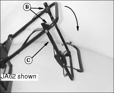 3. Loosen knob (B) 25 mm (1 in.) on each side. Carefully pivot upper handle (C) down.