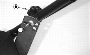 4. Remove knob (D) and carriage bolt (E) from each side.