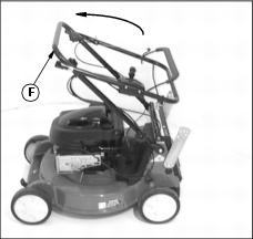 5. Carefully fold lower handle (F) forward. Guide cables inside lower handle. DO NOT CRIMP CABLES.
