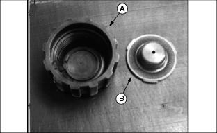 Dirt in the fuel system is a major cause of performance problems. Be sure to clean any grass or trash from the top of the tank before removing lid. Use of a PLASTIC funnel with a plastic mesh strainer when filling the tank will prevent most foreign material from entering the tank. Regular grade 87 octane unleaded fuel is recommended for use in your mower. Higher octane fuels will seldom make your mower perform better. If your mower develops a starting or performance problem immediately after use of new fuel, change supplier or fuel brand. If the problem still exists after switching fuel, see your John Deere dealer for service. Fuels are blended to give peak performance during cold weather and warm weather. For cold weather, gasoline is specially blended to provide better starting capabilities. However, avoid prolonged storage of cold-weather blended fuel because it will evaporate more quickly. You may experience longer cranking times in cold weather with "old" fuel. Buy smaller amounts of cold-weather blended fuel in winter. Fuels used during the summer are not required to provide improved starting properties so they are blended differently. As a result, you may experience hard starting or other performance problems during cold weather if you use fuel remaining from summer uses. Oxygenated or Reformulated Fuels Many areas are now required to add "oxygenates" (either alcohol or ether) which blend oxygen into the fuel to help reduce exhaust emissions. If you use oxygenated fuel be sure it is unleaded and meets the minimum octane rating requirement. DO NOT use fuel that contains methanol to avoid producing excess emissions. Although fuels blended with alcohol or ether allow your engine to run cleaner, they may contribute to fuel system damage and performance problems by causing gum and varnish deposits, especially if fuel is stored for several weeks or more. Using clean, fresh fuel will help to prevent damage to the fuel system and will help maintain peak engine performance. If engine performance problems occur, use fuel from another supplier before suspecting machine problems. Suppliers blend fuels differently and changing suppliers will generally solve any performance problems. Using Fresh Fuel and Stabilizers The best thing you can do to ensure peak performance of your engine is to use "fresh" fuel. Your mower's engine will perform well with most good-quality fresh fuels regardless of additives. Any fuel will begin to deteriorate and evaporate over time and begin to form gum and varnish deposits in the fuel system. Help to avoid this by buying only enough fuel to last approximately 30 days or add fuel stabilizer immediately. Adding a fuel stabilizer to the fuel system is recommended any time the mower will not be operated for more than 60 days. Varnish deposits may build up in the carburetor in as little as a few weeks by using stale, oxygenated fuel. No stabilizer will work with "stale" fuel, any fuel that is more than 30 days old. (See Preparing Your Engine For Storage in this section for information on adding stabilizer to the fuel.) FILLING FUEL TANKFuel tank capacity is 1.4 L (1.5 qt). 1. STOP engine. If engine is hot let it cool several minutes before you add fuel. 2. Remove grass clippings and other trash from tank area. |