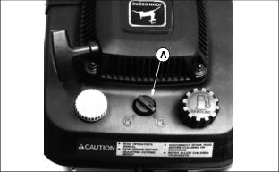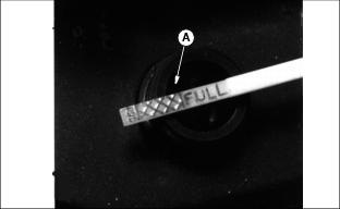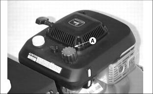 · TORQ-GARD SUPREME® The following John Deere oils are also recommended, based on their specified temperature range: Other oils may be used if above John Deere oils are not available, provided they meet one of the following specifications: · SAE 10W-40-API Service Classification SG or higher · SAE 5W-30-API Service Classification SG or higher · SAE 10W-30-API Service Classification SG or higher · SAE 30-API Service Classification SC or higher Checking Engine Oil Level1. Stop engine. Put mower on a level surface. 2. Remove dipstick and wipe it with a clean cloth. 3. Install dipstick. DO NOT TIGHTEN, LET THREADS REST ON TOP OF TUBE. 4. Remove dipstick. Check oil level. Oil level MUST BE between ADD and FULL marks. If not, pour oil into dipstick tube to bring level to FULL mark (A). 5. Install and tighten dipstick. Changing Engine Oil