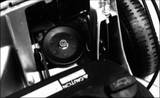 1. Stop engine. If engine is hot let it cool several minutes before you add fuel. 2. Remove grass clippings and other trash from tank area. |