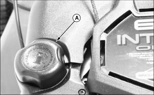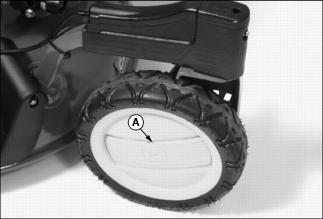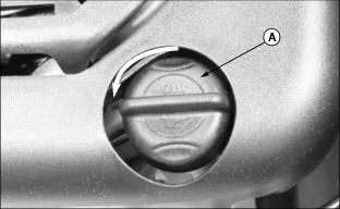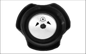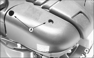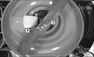 Balancing and Installing Blade1. Clean blade. Put it on a nail in vise or on a wall. Heavy end of blade will drop. Grind bevel of heavy end. Do not change bevel. 2. Install blade, washers (cup-side against blade), and bolts. 3. Tighten bolts to 75 N·m (55 lb-ft). Filling Fuel TankUse regular grade 87 octane unleaded fuel. Add John Deere fuel stabilizer to fuel before using it in your machine to prevent engine damage due to stale fuel. Follow directions on stabilizer container. 1. Stop engine. If engine is hot let it cool several minutes before you add fuel. 2. Remove grass clippings and other trash from tank area. 4. Fill tank with fresh fuel only to bottom of filler neck. Cleaning Fuel Cap Vents2. Check two vents (A) under metal ring and vent in top, center of cap. 3. Clean cap and vents in nonflammable solvent. Let cap dry. |