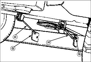 Service MowerRemoving Mower1. Park machine safely. (See Parking Safely in Safety Section.) Disengage mower blades and wait for all moving parts to stop. 2. Put lift lever in highest position. 3. Put wood blocks under each side of mower. 4. Put lift lever in lowest position, bringing deck down onto blocks. Picture Note: Shown from behind L.H. front wheel. 5. Remove belt from engine drive sheave and belt guides: a. Pull down on left-hand side of belt guide (A) and rotate away from engine pulley (B). b. Remove belt (C) from belt guide and pulley. c. Return guide to original position. Insure that the guide is seated into the hole. 6. Remove spring locking pin and washer (D) holding tension rod (E) to blade drive arm (F). 7. Remove spring locking pins and washers (G) from front draft rods (H) and remove draft arms from front axle brackets. Store draft arms with mower. 8. Remove spring locking pins and rear draft pins (I), one on each side, from rear draft brackets (J).