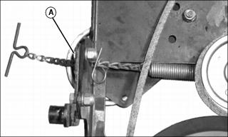 2. Electric PTO tractor only: Remove spring locking pin (A) on outside of clutch idler assembly frame to release belt tension.