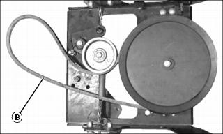 4. Install new V-belt (B) on upper pulley and idler as shown.
