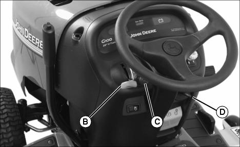 · Turn cutting height knob (A) to desired cutting height position. Mower will be at this cutting height each time it is lowered.