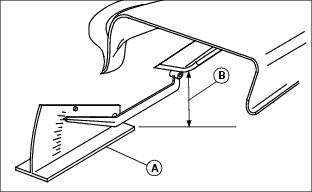 a. Position outside mower blades as follows and measure from each outside blade tip (B) to the level surface.