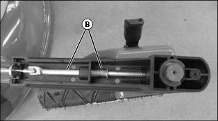 2. Clean dirt from around and on pin and spring (B).