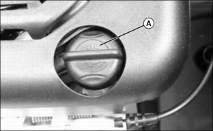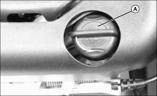 4. Turn dipstick (A) 1/4 turn counterclockwise and remove from the oil filler tube.