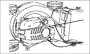 5. Blow compressed air under shroud (B).