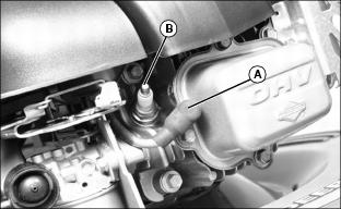 1. Disconnect spark plug wire (A). Remove spark plug (B).