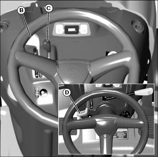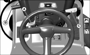 · On models with mechanical PTO: Push PTO lever (B) forward.