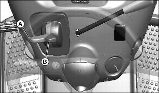 2. Lift up on seat adjustment lever (B) on right side of seat.