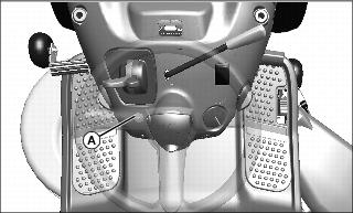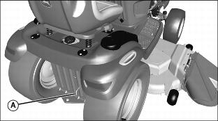 · Pull lift lever (A) all the way back to transport position or 100 mm (4 in.) cutting height.