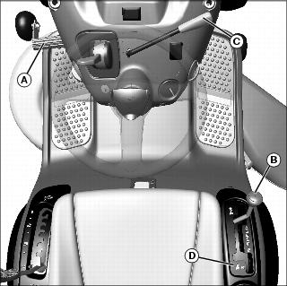 · On Models Without Cruise Control: Use the storage retainer (D) to hold items such as garage door opener.