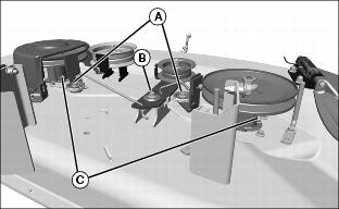 · Lubricate the two spindle grease fittings (C) with one or two shots of general all-purpose grease.