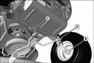 · Lubricate front axle center pivot grease fitting (C) with one or two shots of general all-purpose grease.