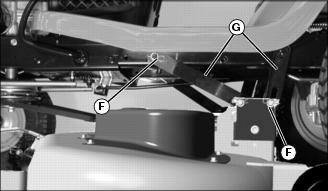 IMPORTANT: Avoid damage! To prevent clutch damage, make sure front draft rod is installed correctly. Secure rod with washer and spring locking pin on the left side of mower deck bracket.