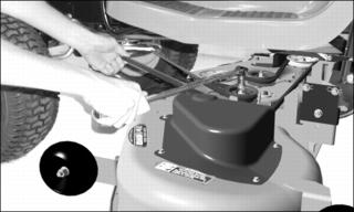 1. Raise mower deck to gain access to mower blades. If necessary, remove mower deck.