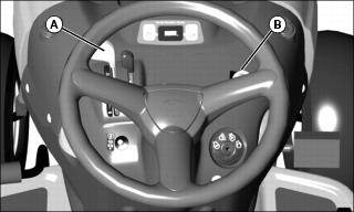 3. Engage PTO (B) and allow mower to run for 10 seconds.