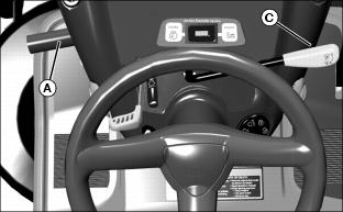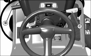 · On models with mechanical PTO: Push PTO lever (C) forward.