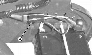 1. Disconnect battery at harness connector (A). Install battery charger to harness connector.