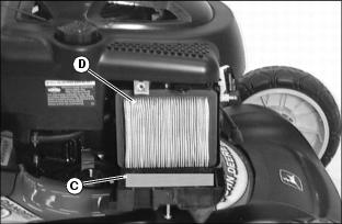 6. Inspect the foam precleaner (C). If the foam precleaner is dirty: