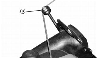 9. Hold blade control bar down and route recoil rope around outside of rope guide pulley (D).