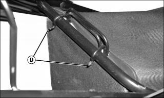 2. Attach grass bag hooks (D) over middle handle cross bar.