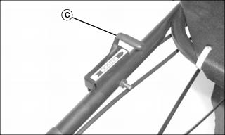 4. Install square relief slot (C) on outside front of grass bag adapter around recycling cover hinge bracket.