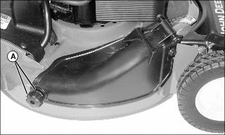2. Remove knob and lock washer (A) securing rear of recycling cover to mower deck.