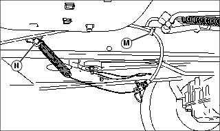 b. Pull out on cable (L), align black end of cable with slot in bracket (M) and release cable into slot. Secure with spring locking pin (N).