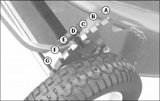 2. Set all wheels at the same cutting height. The highest cutting height is location G. The lowest cutting height is location A.