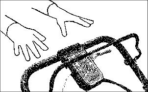 c CAUTION: Avoid injury! Rapid retraction of starter cord, or kickback, can pull hand and arm toward engine faster than you can let go.