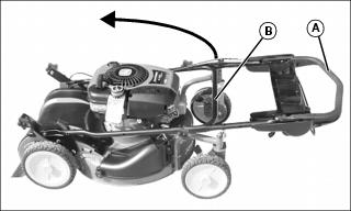 3. Lift handle assembly (A)(B) up and toward back of machine.