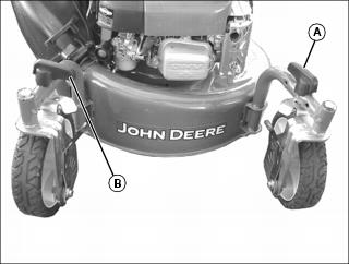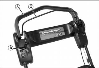 2. Pivot the MOWMENTUM drive handle (A) all the way back.