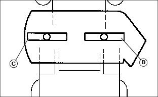 b. Turn left blade (C) as shown. Hold drive belt and turn right blade (D) as shown. Take measurement for both blades.