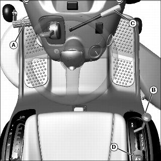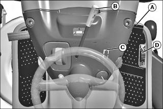 • On Models Without Cruise Control: Use the storage retainer (D) to hold items such as a garage door opener.