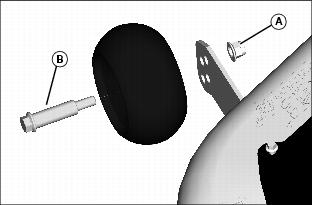 4. Check each mower wheel position. Remove nut (A) and bolt (B), and move mower wheel to proper hole.