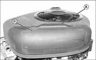6. Do not drop anything into the carburetor air intake (B). If anything falls into the carburetor air intake it must be removed.