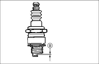 9. Check plug gap (B) with a wire feeler gauge. To change gap, move the outer electrode.