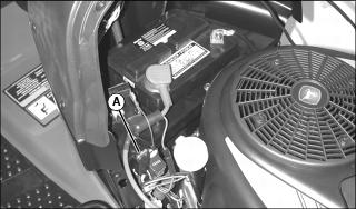 2. Disconnect negative (-) battery cable (A).
