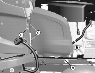 1. Align mounting studs (C) at rear of closeout panels with top of keyhole slots (D) at front of machine cowl.