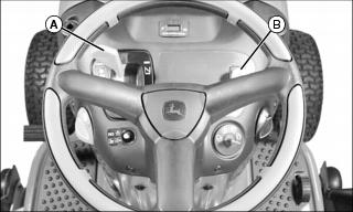 3. Engage attachment engagement switch (B) and allow mower to run for 10 seconds.