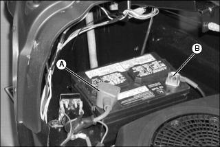 1. Remove and discard the tie strap from the positive (+) battery terminal.