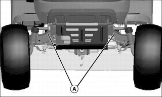 7. Secure front of machine at both sides of the axle at points (A) to trailer with heavy-duty straps, chains, or cables. Straps must be directed down and outward from machine.