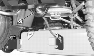 • If the front of the mower deck is not lightly touching the front block, adjust the front draft arm by turning the nut (C).